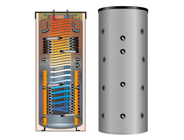 Під такою ємністю, яка монтується в систему опалення, мається на увазі бочка з металу різним обсягом (мінімум 200 л). Її установка проводиться між джерелом теплової енергії і безпосередньо системою опалення. Таким чином, вона виступає в якості перегородки поділу теплових контурів, які мають різну температуру з накопичувачем тепла.