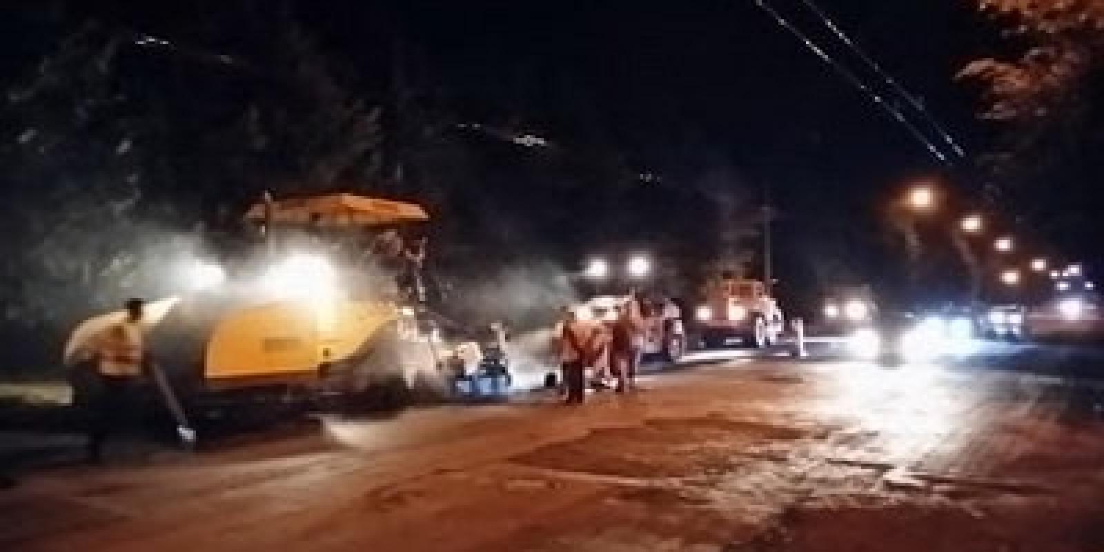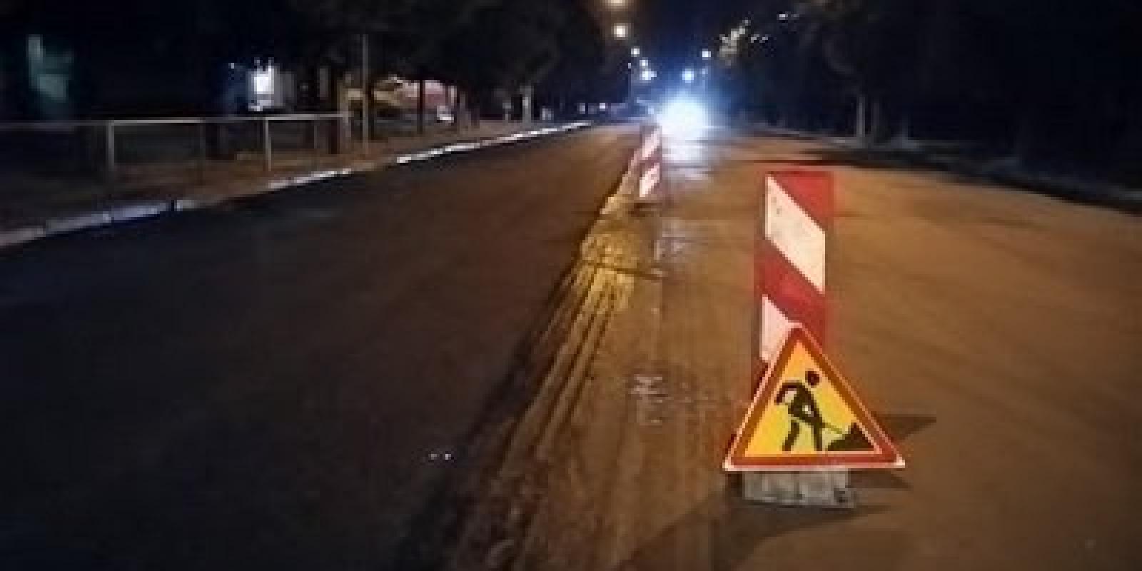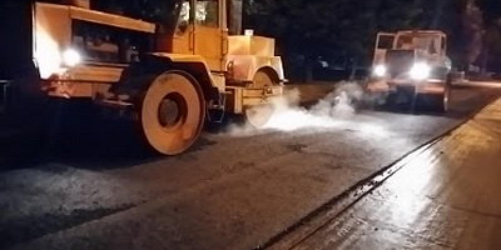 Так вніч на сьогодні дорожники почали укладати на дорозі нижній вирівнюючий шар асфальтобетонного покриття.