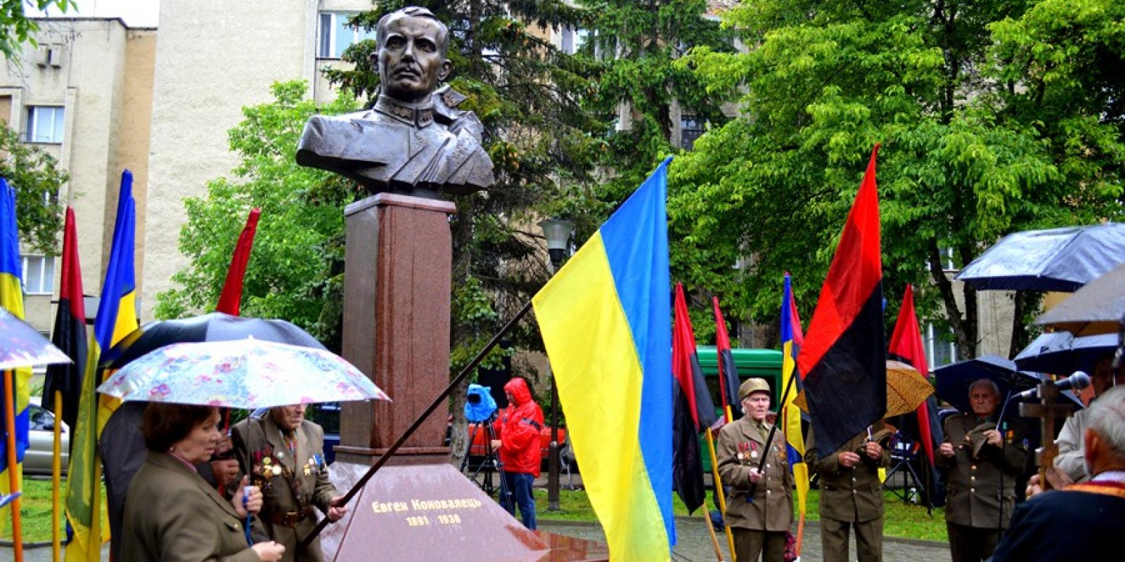 У зв'язку з цією датою, на Вічевому майдані пройшла церемонія спецпогашення маркованого конверта, присвяченого 125-й річниці з дня народження Євгена Коновальця. На площі перед погруддям Коновальця відправили панахиду. Попри те, що на вулиці була дощова погода, сюди прийшли небайдужі мешканці міста, ветерани ОУН-УПА, преставники громадських організацій, міської та обласної влади, повідомляє Франик з посиланням на Бліц-інфо.