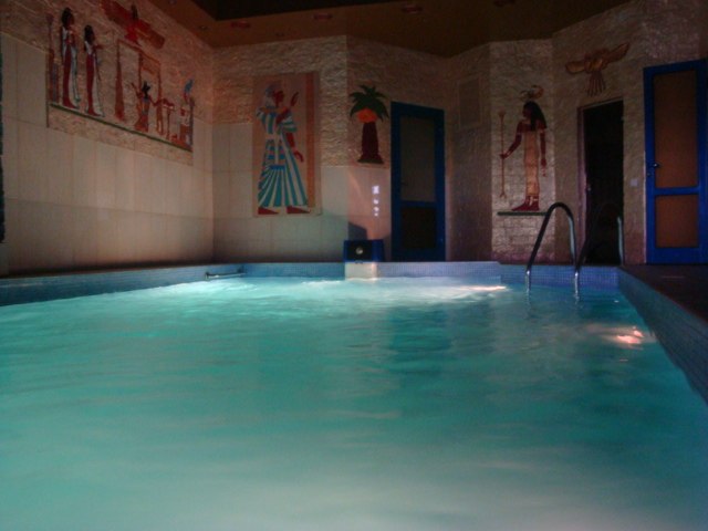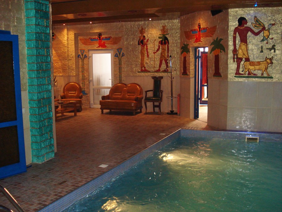 До першого залу входять сауна фінська, басейн 8х4 м. В басейні вмонтовано систему гідромасажу. Вода має постійну температуру 29 градусіВ. Біля басейну є місце для відпочинку, , танцювальний майданчик і банкетний зал на 22 чоловіка. Ідеальне місце для проведення вечірок і корпоративів. Вартість послуг залежить від кількості чоловік